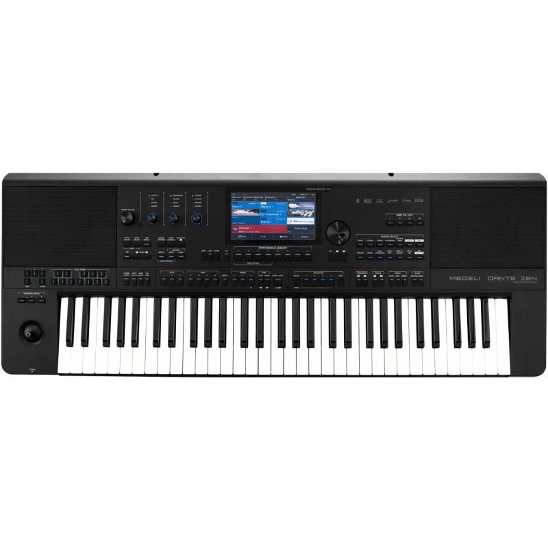 کیبورد Zen Oriental از برند Medeli دارای 61 کلاویه velocity-sensitive با پلیفونی 256 نت است. به لطف صفحه نمایش لمسی رنگی 7 اینچی و کنترلهای متعدد بر روی پنل کاربری Medeli DANTE ZEN – AKX10 TURKISH VERSION، عملکردهای قابل دسترس و ظاهری زیبا یک کیبورد بسیار مناسب برای علاقه مندان به این ساز است. این مدل دارای یک پالت صدایی کامل شامل 1250 تن صدای با کیفیت و 45 ست پرکاشن است. این پالت صدایی شامل سبکهای مختلفی اعم از راک، پاپ، schlager، فولک میباشد. علاوه بر این، 140 صدا و 13 ست پرکاشن ترکی نیز به صورت اختصاصی برای این ساز در نظر گرفته شده که علاقه مندان به سبکهای شرقی نیز بتوانند از این ساز بهره مند شوند. Dante از افکتهای متنوعی اعم از ریورب، کراس، اکولایزر و insert استفاده کرده است که به دلخواه خود میتوانید از این افکتها بهره ببرید. همچنین یک کمپرسور و افکت هارمونایزر پلیفونیک برای ورودی میکروفون در نظر گرفته شده است.