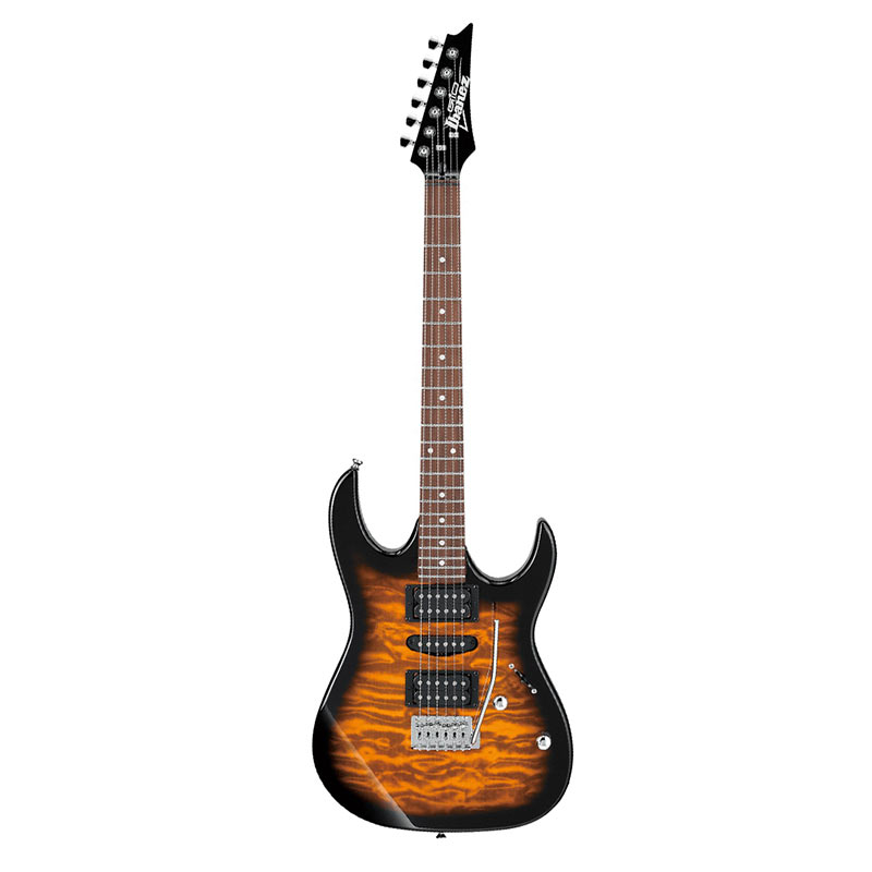 گیتارهای سری جیو آیبانز همواره جزو بهترین گیتارهای بازار در میان گیتارهای ارزان قیمت و مناسب برای نوازندگان تازه وارد بوده اند زیرا مهندسان شرکت آیبانز به خوبی میدانند که چگونه میتوانند گیتارهایی با قیمت مناسب اما با صدای بسیار حرفهای تولید کنند. یکی از تازهترین گیتارهایی که در این سری رو نمایی شده است، گیتار Ibanez GRX70QA-SB میباشد که هنگامی که آن را برای اولین بار از نزدیک ببینید، قیمت آن را باور نمیکنید. یکی از مهمترین نکات در مورد این گیتار چوبی است که برای رویه آن در نظر گرفته شده است. چوب Quilted Maple ای که برای این گیتار در نظر گرفته شده، یکی از زیباترین چوبهای رویه ای است که برای گیتارهای این شرکت در نظر گرفته شده است.
